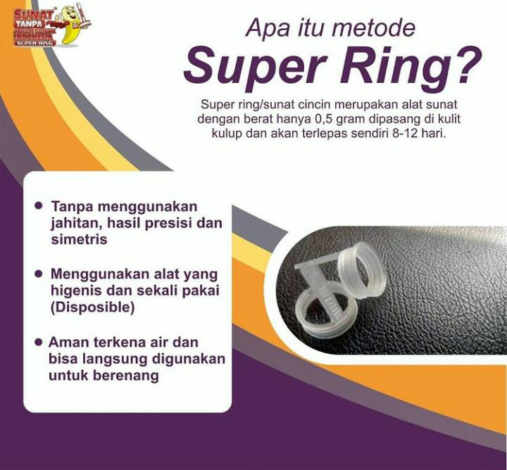 superring adalah metode sunat (sirkumsisi) yang menggunakan clamp alias klem, yakni tabung plastik khusus yang memiliki ukuran bervariasi sesuai dengan ukuran penis.